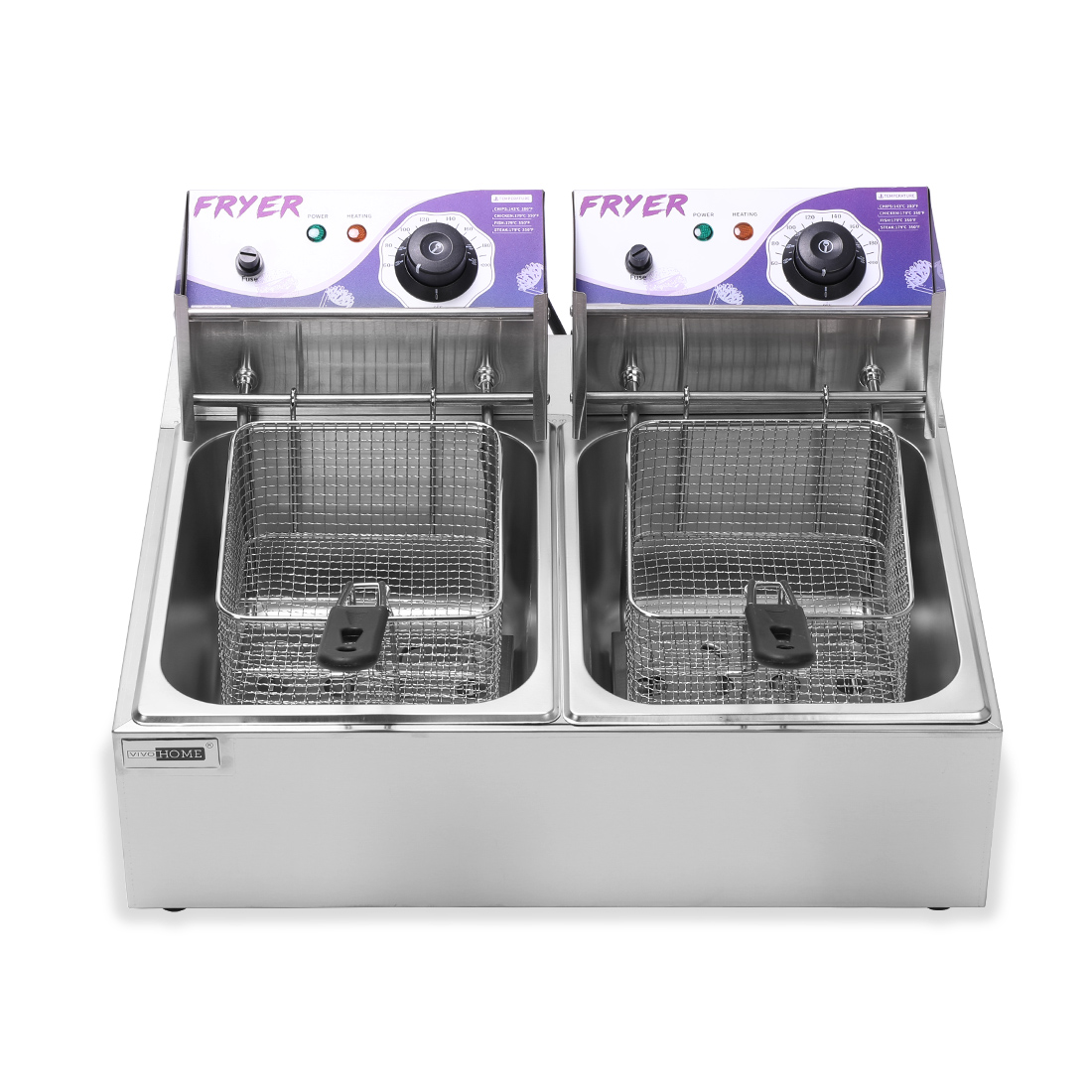 Stainless Steel 17 6 Quart Large Capacity Electric Commercial Dual Tank Deep Fryer With Double Baskets And Temperature Limiter Walmart Com Walmart Com
